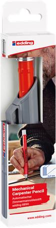 Mechanikus ácsceruza praktikus védő tokban különböző felületek, mint pl. fa, karton, kő vagy beton jelölésére.