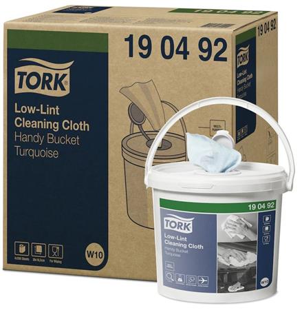 Tisztítókendő, szöszszegény, 1 rétegű, 200 db, hordozható vödörben, W10 rendszer,TORK, türkizkék